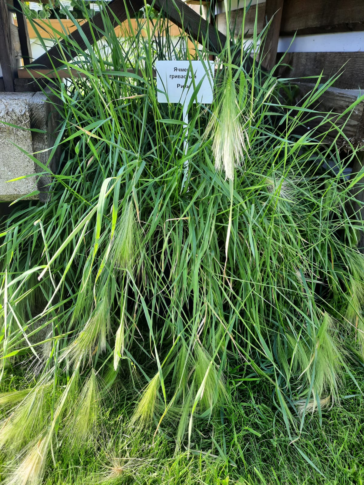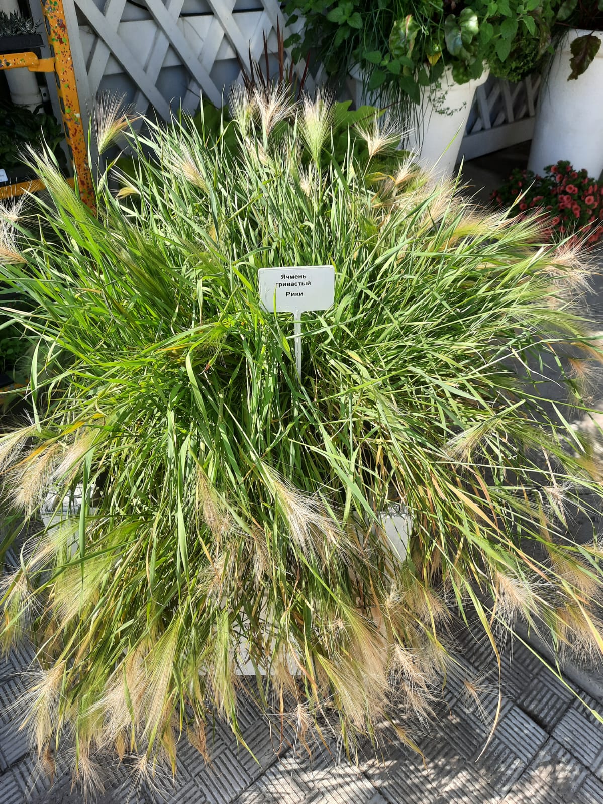 Ячмень гривастый (Hordeum jubatum Ricky) -  компактное, многолетнее, невысокое, травянистое растение с тонкими, изящными, слабооблиственными стеблями и длинными, пушистыми колосками.