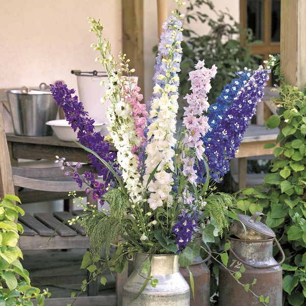 Дельфиниум гибридный Бенарис Пацифик (Delphinium hybrida Benary's Pacific). Многолетник, цветущий в первый год и не требующий периода охлаждения для активизации цветения.