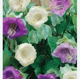 Кобея лазающая Винно-белая. Обильноцветущее растение-лиана. Смесь сортов с цветками белых и фиолетовых оттенков. Побеги длиной до 400 см создают живой занавес из густой листвы и крупных колокольчатых цветков диаметром 7-9 см. Кобею используют для вертикального озеленения беседок, пергол, стен, заборов и выращивания в контейнерах. По окончании сезона можно сохранить растения в прохладном помещении до следующей весны.