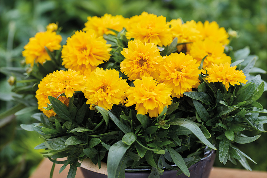 Кореопсис Сан Глоб (Coreopsis grandiflora SunGlobe) - многолетник, цветущий в первый год жизни, с множеством красивых полумахровых золотисто-жёлтых цветков.