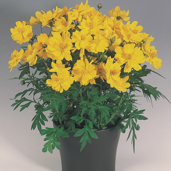 Космея серно-желтая Космик (Cosmos sulphureus Cosmic) - роскошная серия космеи с ажурной листвой и крупными махровыми соцветиями.