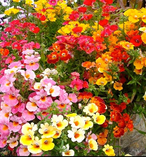 Немезия зобовидная Галакси Биколор Смесь. Высокодекоративный низкорослый летник для украшения цветника с очень пышным ярким цветением. Высота растений 25-30 см. Немезия красива на клумбах,  в бордюре, пятнами на газоне. Будет прекрасно смотреться в разнообразных контейнерах на балконе и в саду. Свето- и влаголюбивая, холодостойкая, хорошо развивается на легких почвах без застоя влаги. Обрезка старых побегов продлевает цветение до заморозков.