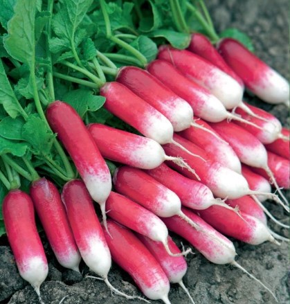 Редис Мизинчик. Раннеспелый сорт с цилиндрическими корнеплодами.