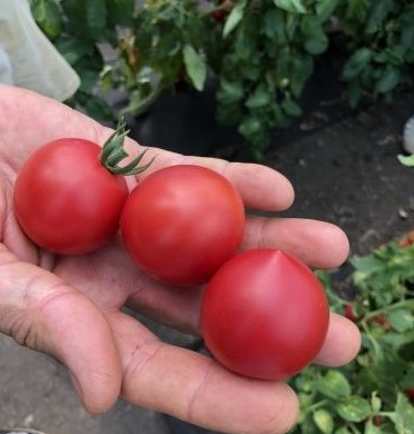 • Помидоры округлой формы с «носиком», интенсивной розово-малиновой окраски, массой 30–35 граммов, плодоножка короткая.