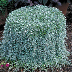 Дихондра серебристая - семейство вьюнковые.Это красивое многолетнее травянистое растение с ползучими стеблями (плетями), легко укняющимися узлами, очень приятными и нежными листьями серебристого или зеленого цвета. Таким способом дихондра быстро и довольно свободно расползается по поверхности земли.Листья практически круглые, небольшие 0,8-3 см, супротивно расположены, черешки 2-3 см длиной серебристого или зеленого цвета, как у сорта 'Emerald Falls' (Изумрудный водопад). Сорт 'Silver Falls' (Серебряный водопад) имеет мягкие опушенные листья, шелковистые на ощупь. Цветки мелкие, всего 2-3 мм в диаметре, встречаются лилового, беловатого, зеленоватого цвета.