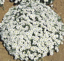 Аренария (песчанка) горная Сноубанк (Arenaria montana Snowbank) - крепкие, компактные растения образуют пышные куртины, в период цветения сплошь покрытые довольно крупными белыми соцветиями.