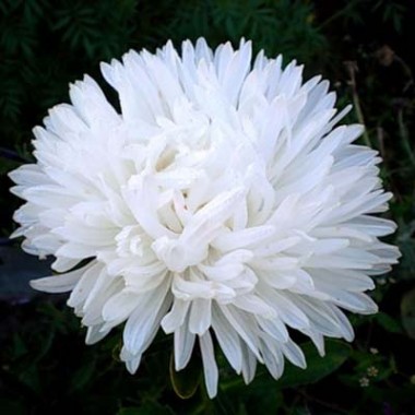 Астра Аполлония Вайт. Цветок представляет выпуклую корзинку с широкоязычковыми цветками. Стебли мощные, очень прочные, устойчивы к полеганию. Прочный куст высотой 70 см. Соцветия крупные, диаметром 10-12 см. Цветет в августе-сентябре. Используют очень широко: для посадки в сборные цветники группами, на рабатки - рядами, для бордюров и срезки.