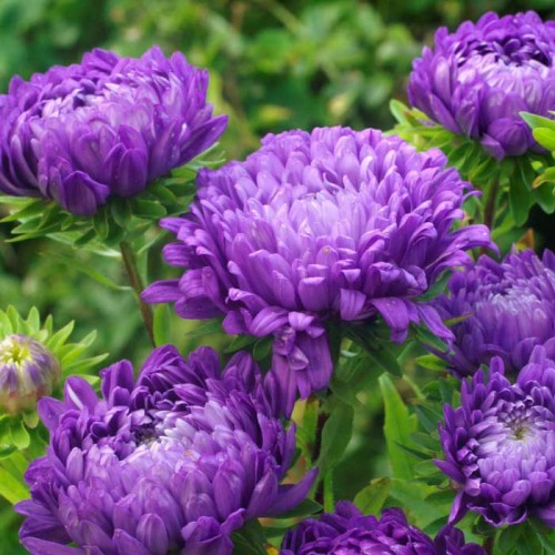 Астра пионовидная Дюшес Блю - куст колонновидной формы, ветвистый, высотой около 70 см. Цветоносы прочные, густооблиственные. Соцветия полушаровидные, густомахровые, 8-10 см в диаметре. Язычковые цветки широкие, приподняты вверх, закрывают трубчатые цветки. Цветет август-сентябрь. Используют для посадки в сборные цветники группами, на рабатки - рядами. Великолепный материал для срезки.