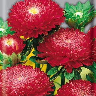 Астра помпонная Вишнево-красная. Растение компактное, цилиндрической формы, ветвистое. Цветоносы прочные. Соцветия плоскоокруглые, диаметром 5-6 см, вишнево-красные. Язычковые цветки широкие короткие, расположены в 2-4 ряда по краю. Центр заполнен длинными трубчатыми цветками, собранными очень плотно и окрашенными также как язычковые. На растении до 30 соцветий. Цветет июль-август. Используют очень широко: для посадки в сборные цветники группами, на рабатки – рядами и на срезку.