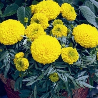 Бархатцы прямостоячие Антигуа (Tagetes erecta Antigua). Ранний, однородный и компактный тагетес.