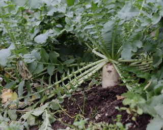 • Розетка листьев прямостоячая. Лист длинный, узкообратнояйцевидной формы, зеленый. Корнеплод длинный, конический с белой кожурой, со слабой шероховатой поверхностью, головка округлая, форма основания острая.