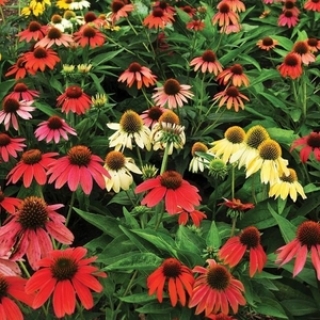 Эхинацея Шайенн Спирит (Echinacea x hybrida Cheyenne Spirit). Серия отличается способностью зацветать в год посева, благодаря быстрому развитию растений.