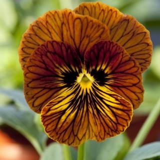 Фиалка рогатая Тайгер Ай (Viola cornuta Tiger Eye). Сорт фиалки рогатой Тайгер Ай имеет окраску с жилкованием. Хороший вариант для внесения разнообразия в стандартный ассортимент продукции.