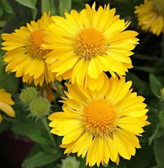 Великолепные цветы для букета. Растение высотой 70-75 см. Длинные, гибкие, свободно приподнятые над листьями цветоносы, заканчиваются крупными желтыми соцветиями-корзинками до 12 см в диаметре. Цветение обильное и продолжительное. Зацветают на второй год с июня по август. Используют для различных посадок  и как прекрасный материал для срезки.