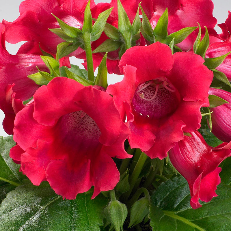Глоксиния Мультибеллс F1 (Sinningia speciosa F1 Multibells) - серия глоксинии, которую отличает исключительная однородность урожая с обильным количеством цветков и цветением на 10-14 дней раньше, чем у любой другой глоксинии. Может производиться с более высокой плотностью для повышения рентабельности.