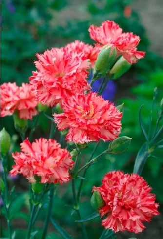Гвоздика садовая Авранчин - гвоздика с крупными махровыми цветками. Цветки крупные, диаметром 4-6 см, душистые. Многолетнее растение, выращиваемое как однолетнее. Кустики обратнопирамидальные, компактные с четко выраженным главным стеблем, высотой 60 см. Листья с серым или голубым налётом. Края лепестков зазубренные. Цветет с июля по октябрь. Используют в цветниках и для срезки.