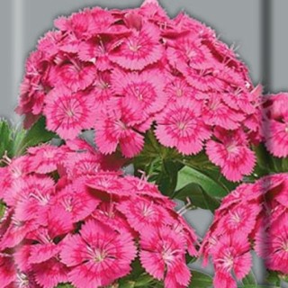 Гвоздика турецкая Ясмин. Растение высотой около 50 см. Листья линейно-ланцетные, зеленые. Окраска розовая. К концу 1-го года выращивания образуется розетка прикорневых листьев. На следующий год растения цветут с конца июня в течение месяца. Используют для сборных цветников, рабаток и для срезки.
