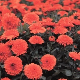 Календула махровая Ред виз блэк центр. Растение густоветвистое, высотой около 50 см. Соцветия крупные, махровые. Цветёт с июля по сентябрь. Используют для клумб, рабаток, бордюров и срезки.