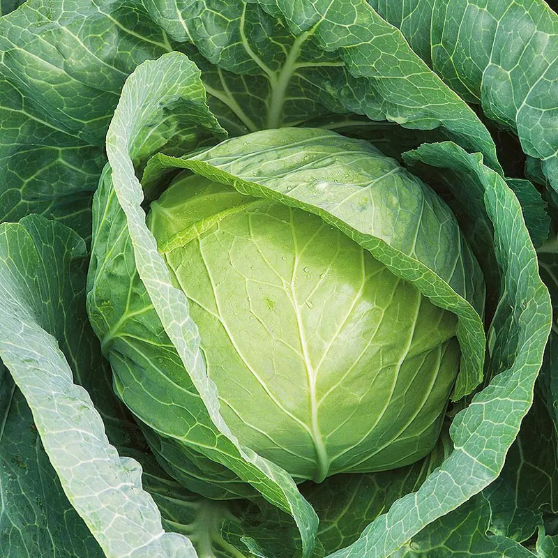 • Кочан круглый, высотой 15,5-17,5 см, наружная окраска -зеленая, на разрезе — белая с желтовато-кремовым оттенком.