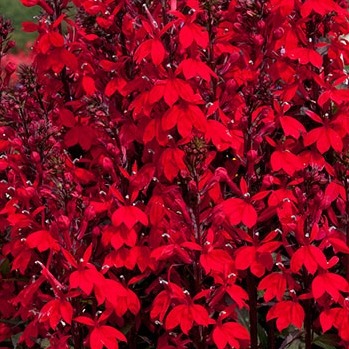 Лобелия прекрасная Старшип (Lobelia x speciosa Starship). Оригинальный многолетник с декоративной листвой, формирующий колос с яркими многочисленными цветками.