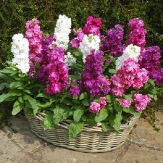 Маттиола Хармони микс (Matthiolla incana Harmony Mix). Однородная, карликовая, ветвящаяся серия с превосходным ароматом.