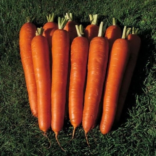 • Корнеплод узкоудлиненный, оранжевый, с гладкой поверхностью, кончик тупой, головка слегка вдавленная. Сердцевина и кора оранжевые.