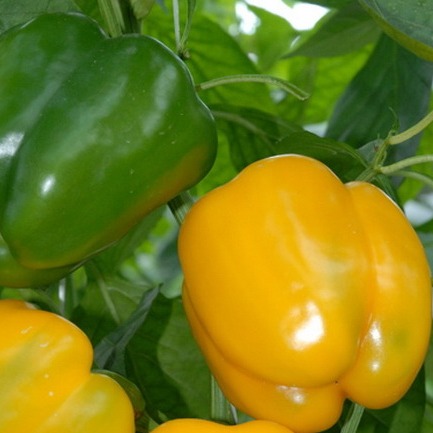 Перец Дерби F1. Среднеспелый гибрид Период от всходов до технической спелости 125 дней. Плоды кубовидной формы, р-ром 7-12 см., толщина стенок 4-6 мм. При созревании цвет меняется от зеленого к желтому. Рекомендуется для выращивания в продленном обороте в стеклянных и пленочных теплицах.