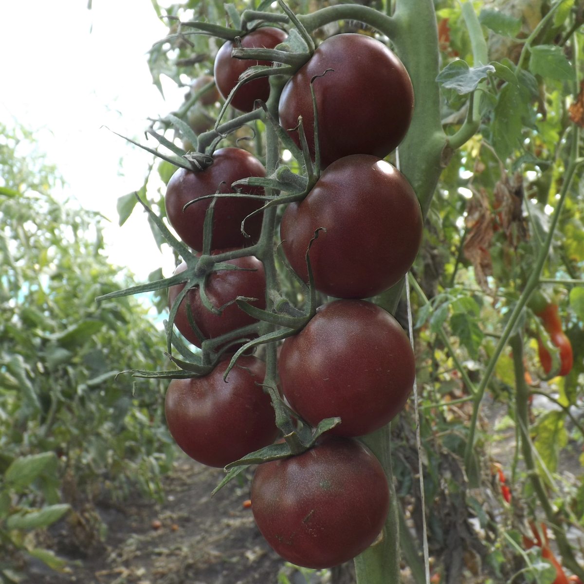 • Коричневый томат коктейльного типа, красивая симметричная кисть на 10 плодов.