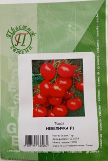 Томат Невеличка F1. Включен в Госреестр по Российской Федерации для выращивания в открытом грунте в ЛПХ. Консервный. Раннеспелый сорт. Растение детерминантное. Лист среднего размера, зеленый. Соцветие простое. Плод округлый, среднего размера, гладкий, средней плотности. Окраска незрелого плода светло-зеленая, зрелого - красная. Число гнезд - 2-3. Масса плода - 50 г. Вкус хороший. Урожайность товарных плодов - 3,5 кг/кв.м.