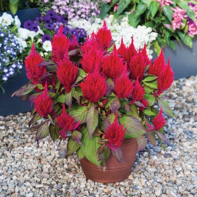 Целозия перистая Спаркс Брайт (Celosia plumosa Bright Sparks). Серия выделяется среди конкурентов большими пушистыми соцветиями, хорошо разветвленным габитусом и отличной устойчивостью к жаре.