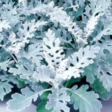 Цинерария приморская (Cineraria martima) - летник из семейства Сложноцветные. Выращивается ради орнаментальных серебристых опушенных листьев. Применяется в качестве бордюрного, хорошо стригущегося растения. Наиболее ценными считаются сорта с компактным габитусом и не склонные к перерастанию.